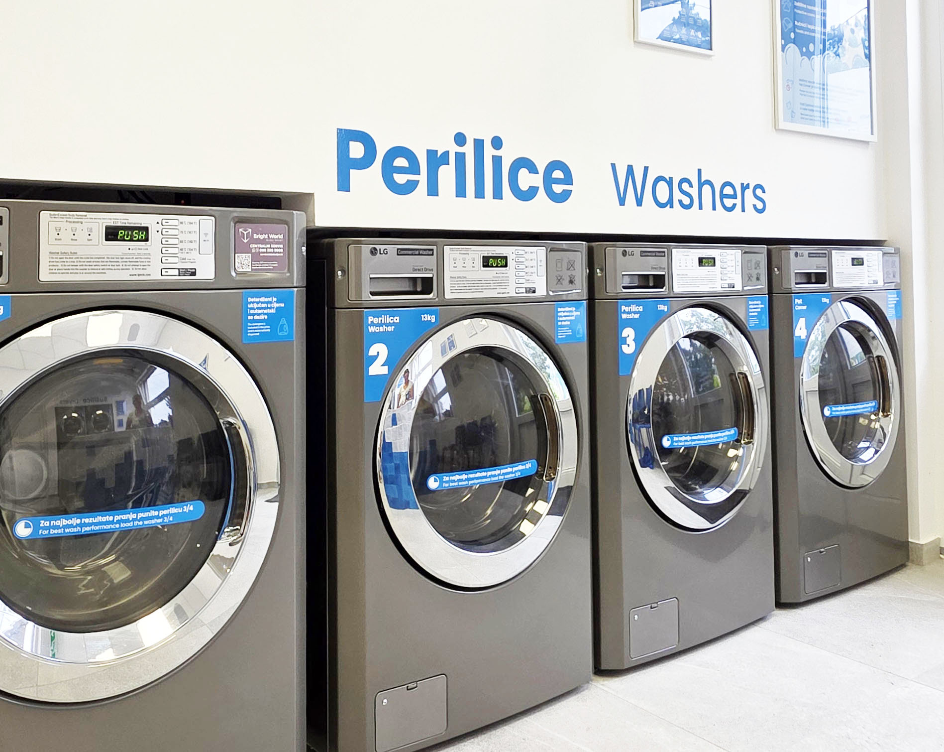 U našoj samoposlužnoj praonici koristimo LG perilice i sušilice – svjetski poznate strojeve vrhunske kvalitete. Dizajnirane za intenzivnu upotrebu i dugotrajnu pouzdanost, ove profesionalne perilice i sušilice omogućuju brzo, temeljito i učinkovito pranje rublja. Bilo da perete svakodnevnu odjeću, posteljinu ili veće komade poput deka, LG osigurava rezultate na koje se možete osloniti. Uz to, prostor je opremljen i generatorom ozona koji dodatno dezinficira rublje i osvježava unutrašnjost strojeva, pružajući higijenski čisto i mirisno rublje nakon svakog pranja.